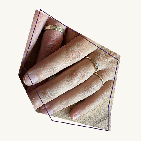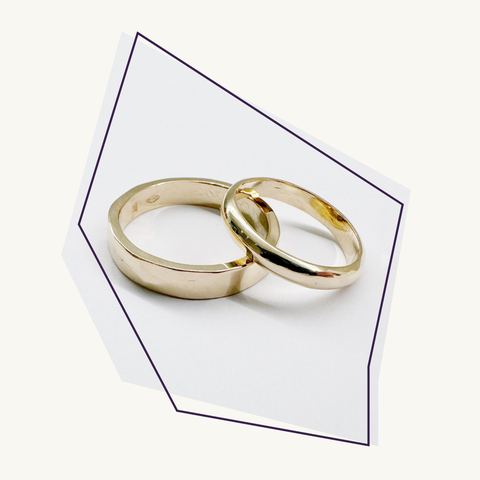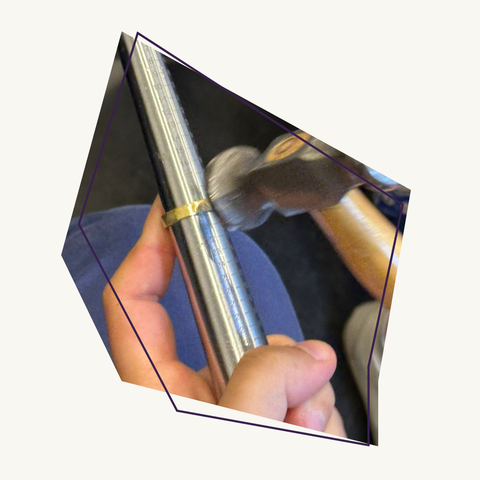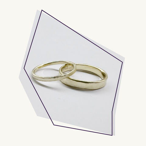 De staaf walsen en/of trekken we tot een draad. Deze wordt door jullie gezaagd, gevijld, gevormd, gesoldeerd en tot een ring gesmeed. Je kan daarbij ook jullie eigen structuur op de ring aanbrengen door met veel liefde (en de juiste hamers ook een beetje) te hameren. Ten slotte heb je keuze uit verschillende finishes: mat, satijnglans of hoogglans. Wil je een gravure laten toevoegen kan dit ook tegen een meerprijs. The final touches doe ik met veel liefde voor jullie zodat jullie ringen helemaal perfect zijn voor de grote dag en een leven lang daarna!